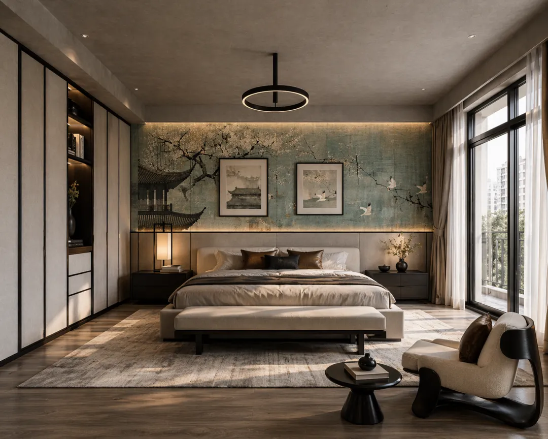 它不仅识别了手绘轮廓里的家具位置,还把那种东方禅意自然地融进了现代空间里。