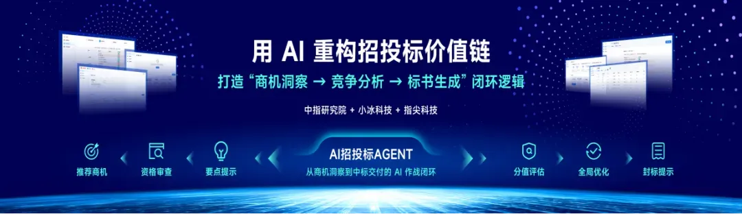 在竞争激烈的招投标市场中,企业常常面临"大海捞针式"筛选项目、盲目投入资源、标书质量参差不齐、中标率低迷等痛点。据统计,传统模式下企业平均要投入3-5人团队、耗费7-10天时间才能完成一份高质量标书,而中标率却普遍低于15%。如何突破这一困境?中指院联合小冰及指尖科技研发的AI招投标Agent(《3天→10分钟!AI招投标Agent重构物业招投标场景》),正以革命性的方式重构投标价值链,为企业带来前所未有的竞争优势。