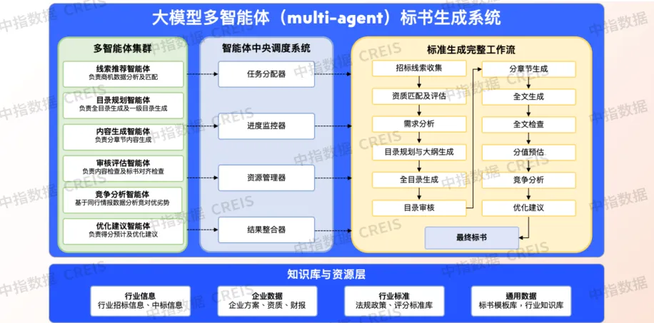 AI招投标Agent突破传统模板化编标模式,基于大模型多样化的生成能力,实现标书内容的个性化定制。系统深度解析招标文件,提炼标书要求与评分要点,自动生成高分目录框架,并通过调用企业数据库(资质库/技术方案库/财务数据池等),实现标书内容分钟级批量生产。