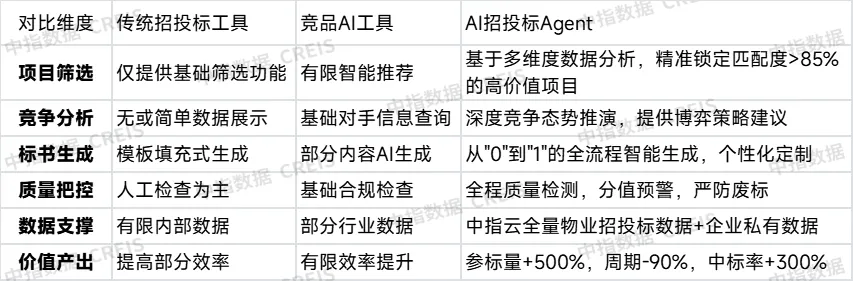 相较于市场上其他招投标工具,AI招投标Agent具备显著优势:
