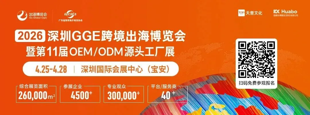 展会倒计时8天,2026 年 4 月 25 日 —28 日,深圳国际会展中心(宝安),深圳GGE 跨境出海博览会暨第 11 届 OEM/ODM 源头工厂展即将全面启幕,为所有寻求突破的跨境人打造的合规解决方案 + 供应链升级 + 全球渠道对接 + 年度趋势预判一体化平台。