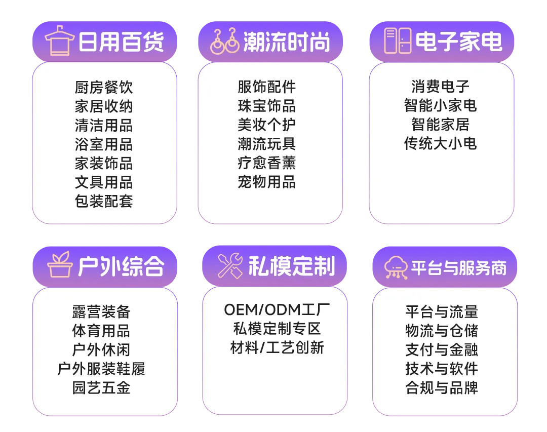 GGE深圳跨境出海博览会汇聚华东、华南上千家优质 OEM/ODM 源头工厂,集结大量支持小单快反、柔性生产、个性化定制的供应链厂商,覆盖跨境全品类: