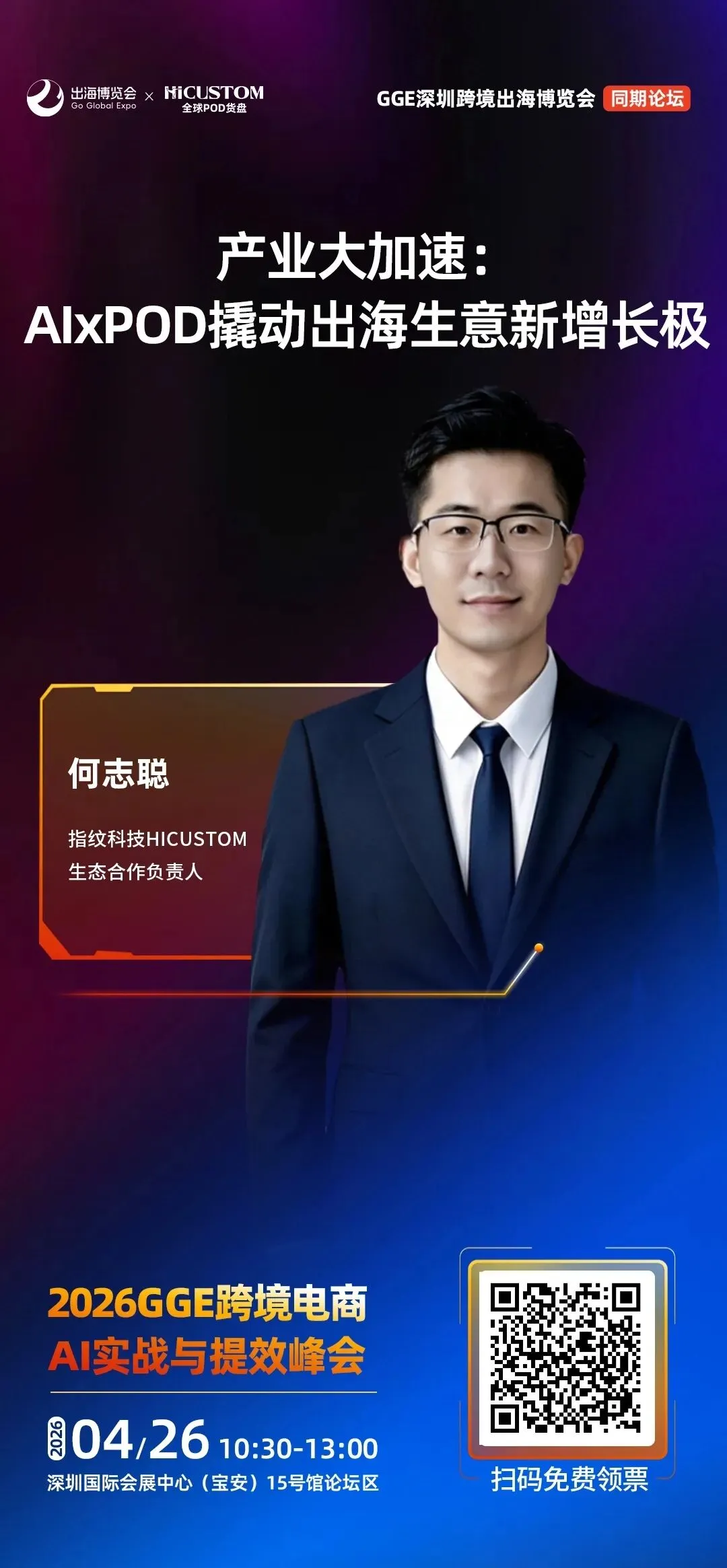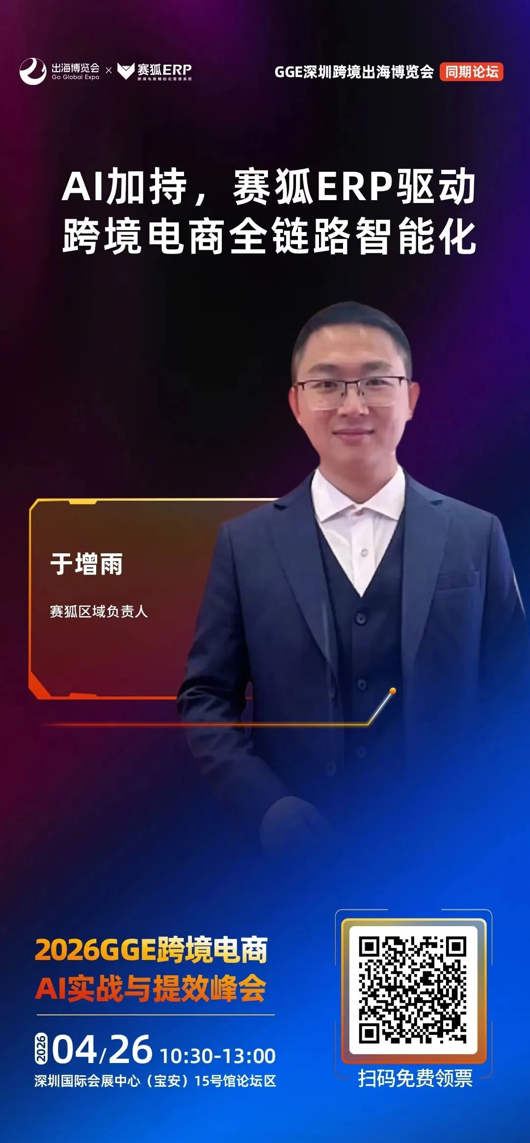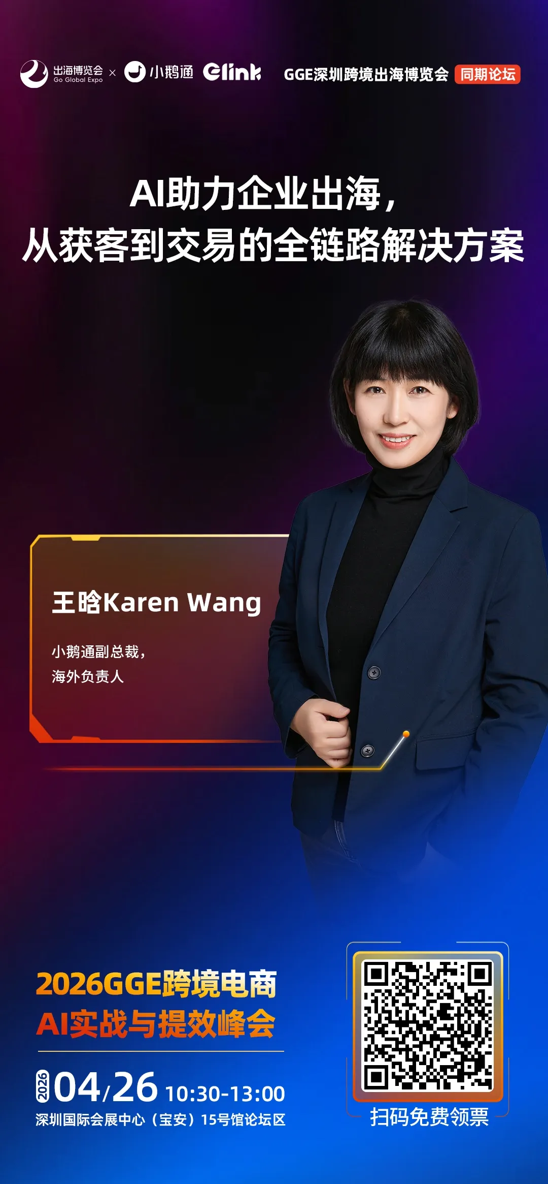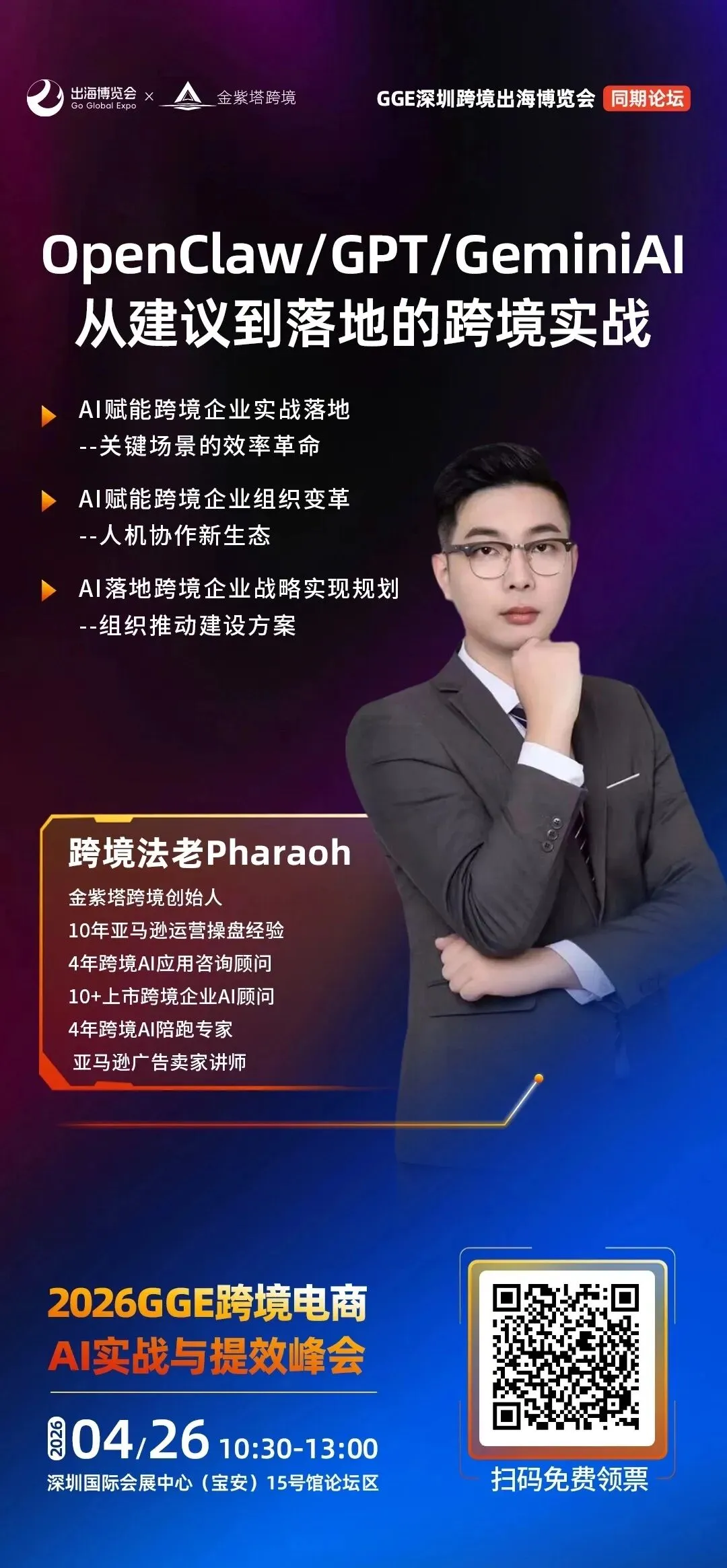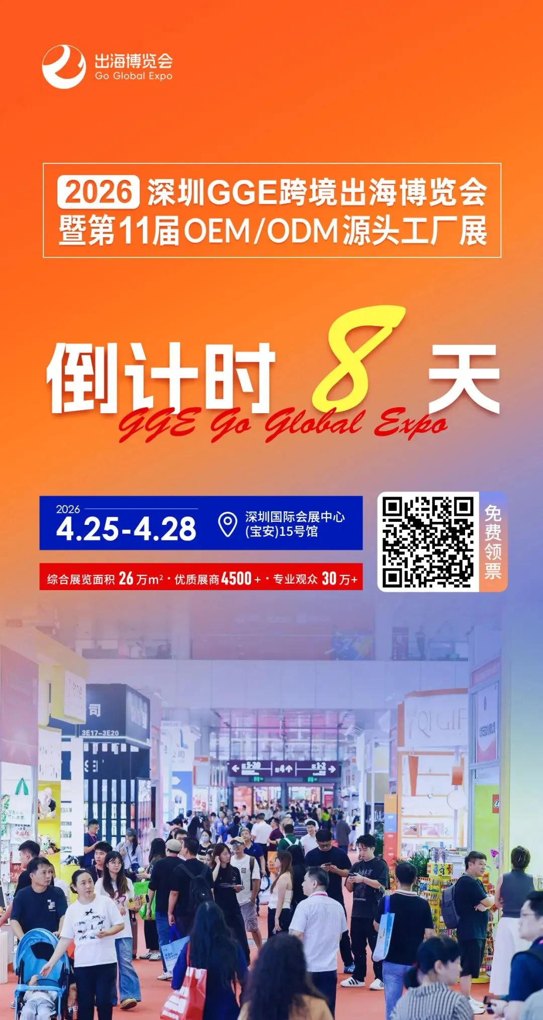 立即扫码领票,来GGE深圳跨境出海博览会,把供应链资源、全球渠道、AI 能力、实战方法一次性配齐。