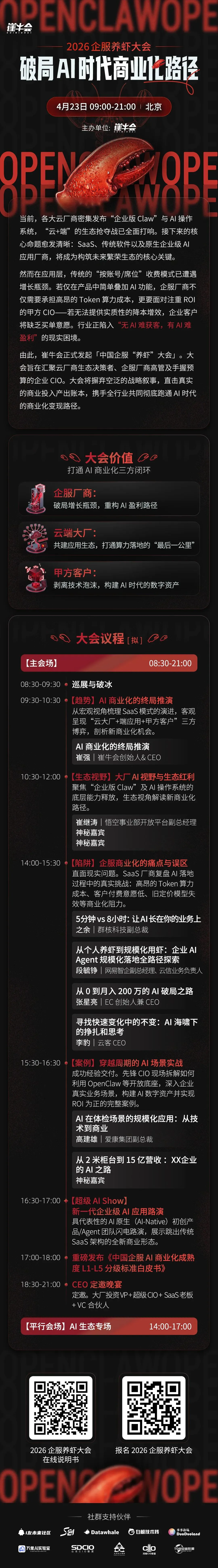 点击“阅读原文”报名2026企服养虾大会,破局AI时代商业化路径