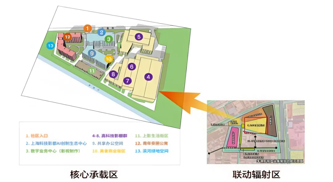 以昊浦社区70亩用地(建筑体量约8.3万平方米)为“AI+数字内容”产业核心承载区,联动启名影视基地、路东产业基地、1905影视产业园等空间载体(约40万平方米),辐射整个影视产业车墩片区。