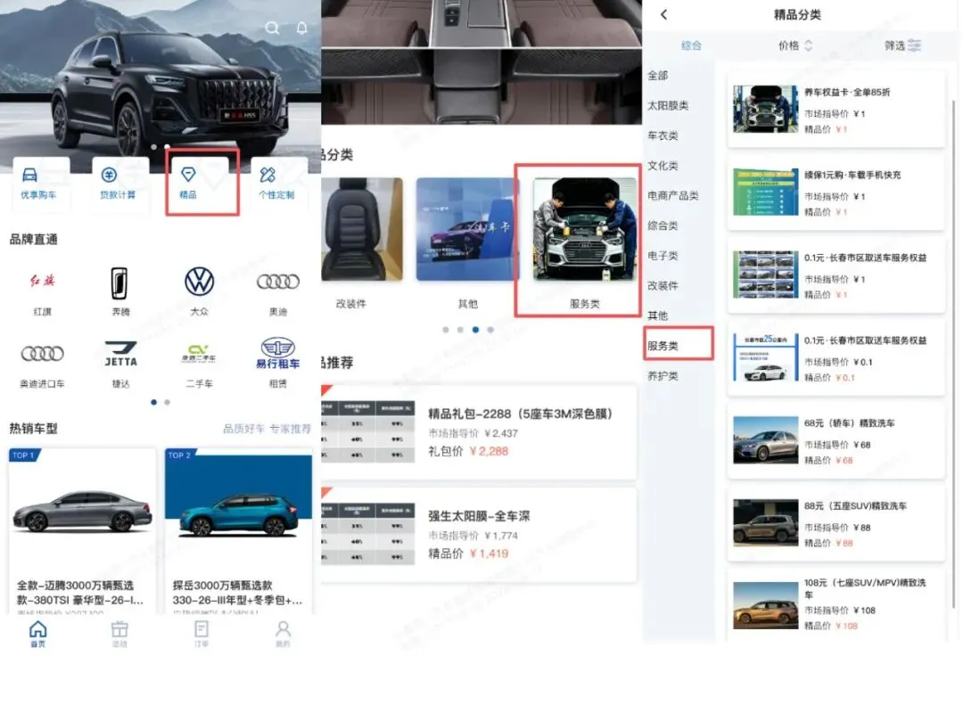 进入首页选择“精品”选项,然后选择“服务类”,即可获取各服务项目信息