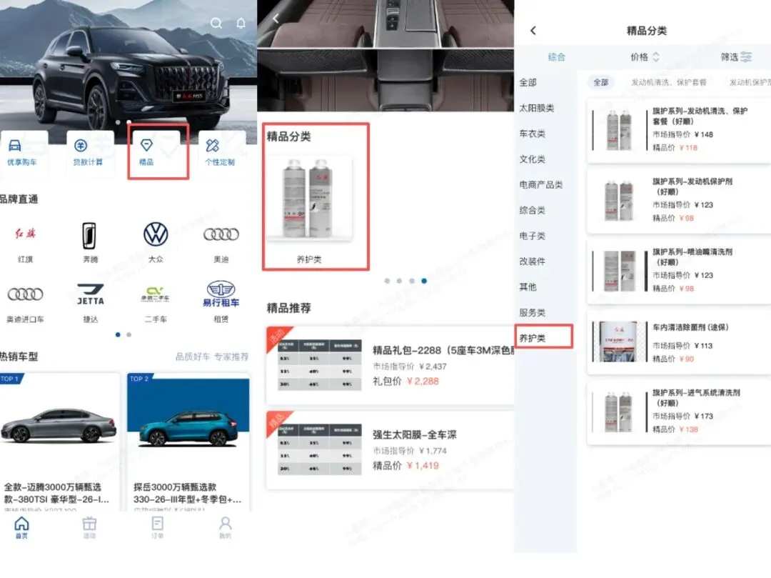 进入首页选择“精品”选项,然后选择“养护类”,即可获取养护项目信息