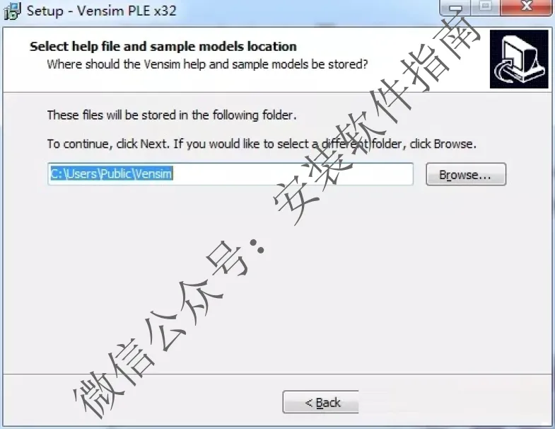 4.设置安装目的地,默认的是C:\Program Files (x86)\Vensim,如需修改点browse