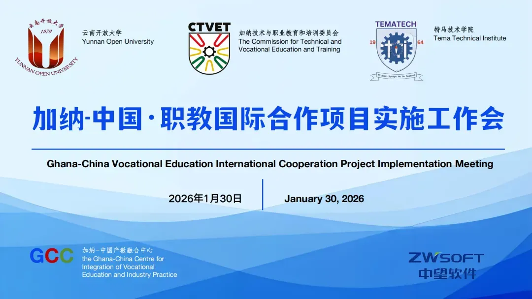近日,云南开放大学与加纳特马技术学院合作的《建筑施工技术(NC II)》课程正式开班,双方完成 MOU 签署,首批加纳师生正式进入教学实施阶段,标志着中加职教合作迈入实质性落地新阶段。作为加纳—中国产教融合中心(GCC)首批副理事长单位、装备制造大类与土木建筑大类专委会独家主任单位,中望软件以国家工业软件行业产教融合共同体为依托,深度参与本次出海项目全流程:推动中国职教课程在加纳完成本地化认证,搭建中加联合教学团队,提供教育类软件支撑海外实训教学开展,助力中国成熟职教体系在海外平稳落地、高效运行。