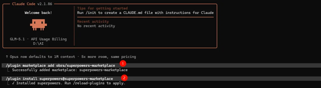 # 步骤 1:注册 Superpowers 市场源/plugin marketplace add obra/superpowers-marketplace# 步骤 2:安装插件/plugin install superpowers@superpowers-marketplace
