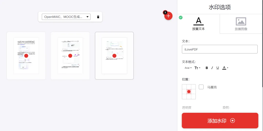 水印支持文字水印和图片水印,且可以设置水印位置等。设置完成之后,点击“添加水印”按钮,完成水印的添加。