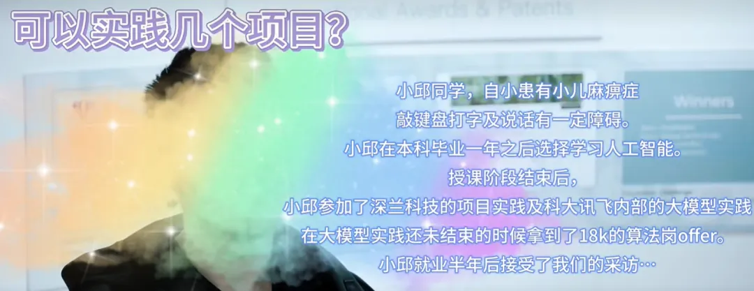 第二,深兰的课程体系足够全面。 我们不是只教一个方向,CV、NLP、大模型全都有。他可以选自己最适合的,也可以都学。一专多能,才让他后来能够胜任那么多不同类型的项目。