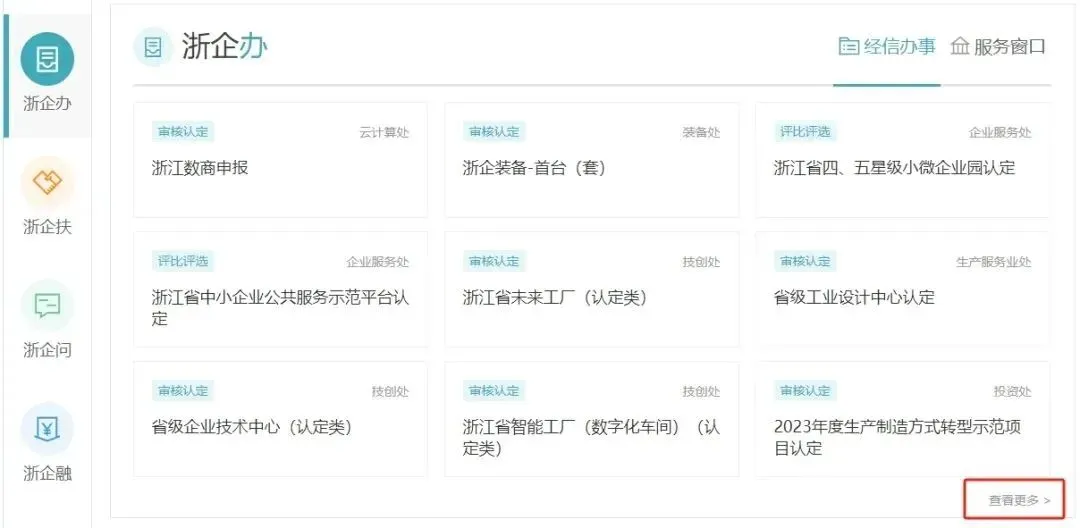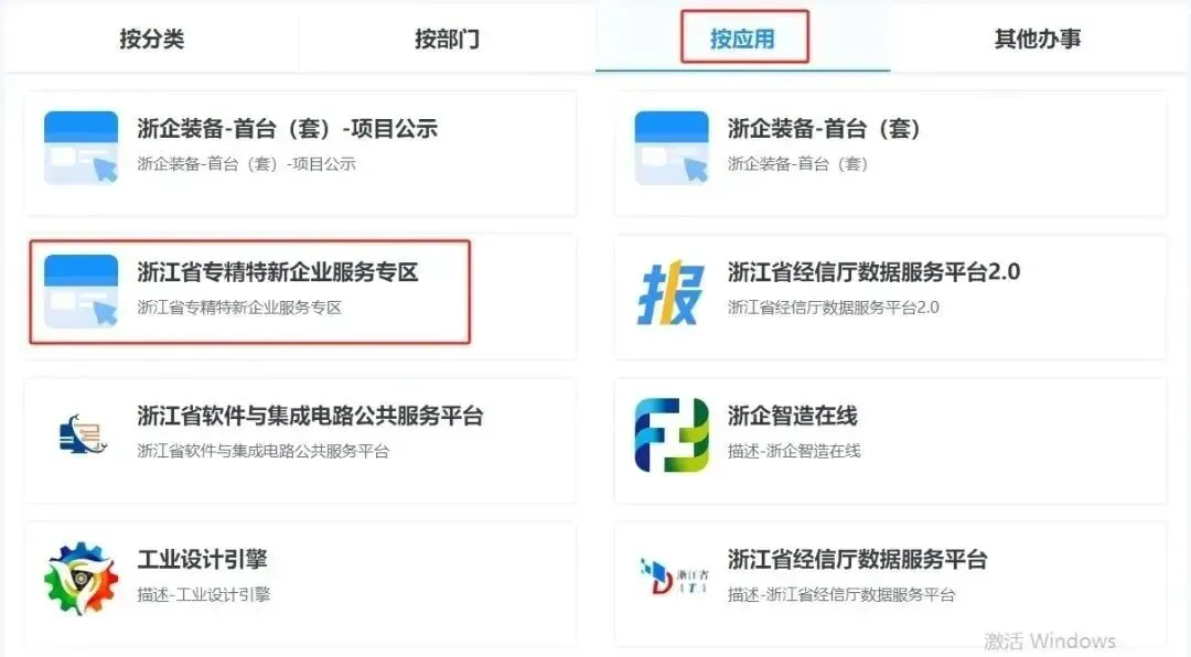 企业登录浙江省企业之家网(网址:https://zj87.jxt.zj.gov.cn/),通过点击左侧【浙企办】-【查看更多】-【按应用】-【浙江省专精特新企业服务专区】