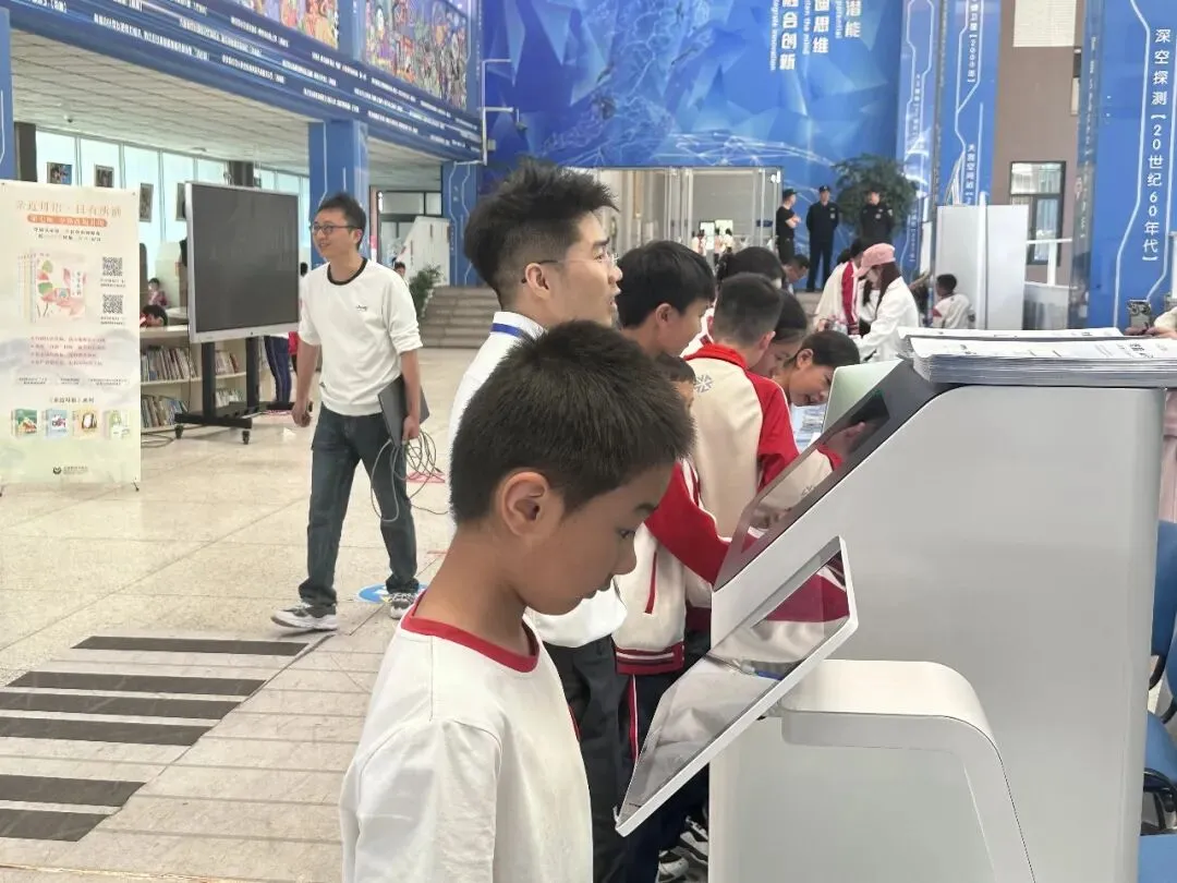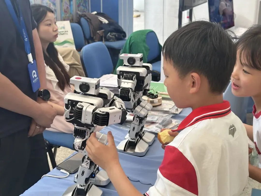 现场学生感受科创机器人产品