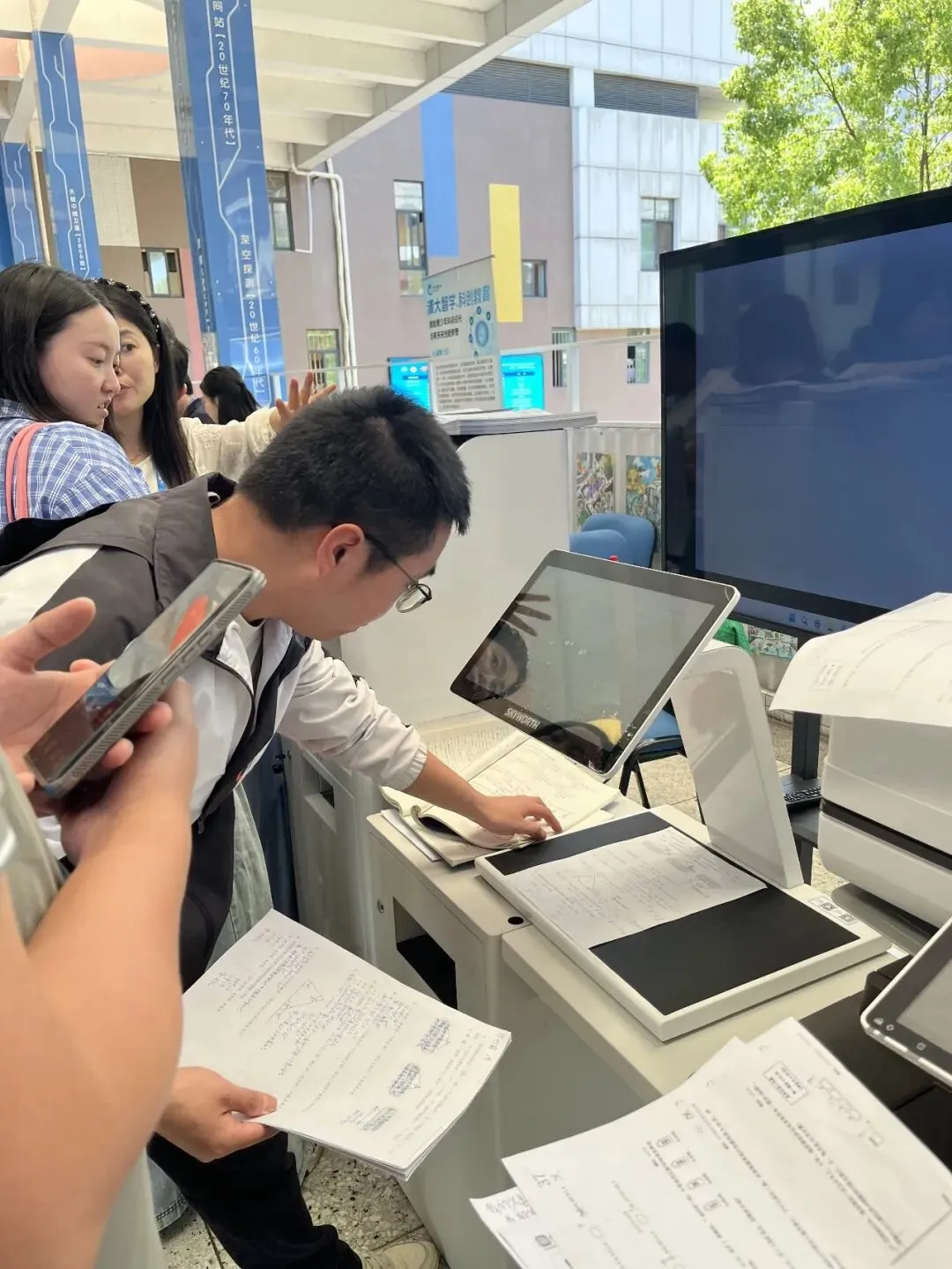 现场工作人员讲解AI助教机使用功能
