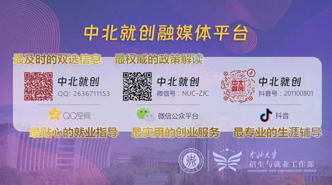 中北大学招生与就业工作部为在校生提供专业的1v1简历修改服务,由资深教师带领职业发展协会就业志愿者团队,为正在求职面试的你提供公益的简历修改和制作建议。请识别下方二维码预约。