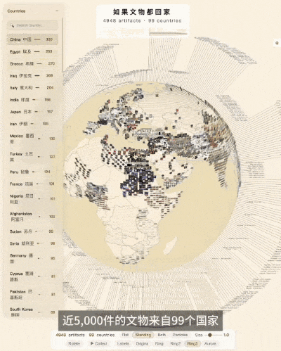抖音精选创作者 @麻省理工Rui同学 “手搓”的互动应用给出答案:旋转的地球上,近5000件来自99个国家的藏品,以卡片的形式矗立在他们真正的故乡——埃及的罗塞塔石碑回到尼罗河畔,希腊帕特农神庙的浮雕重新站在雅典上空,顾恺之的画作静静铺展在华夏大地......点击“回家”,藏品的光点像流星一样从伦敦飞向世界各地,照亮整个星球。