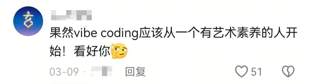 在抖音精选,Vibe Coding的形态五花八门:可以是让文物回家的温情互动,可以是一句送给地球的花语,也可以是20分钟造一个顺手工具的极客日常。就如@ami.moment 所说:“要学会在公众领域去展示你的创作,才能获得更多共鸣和回响。”对这些创作者而言,用最前沿的技术让每一个脑洞都有回响,本身就是一件很酷的事。而评论区里那些“求教程”“我也要试试”的留言,就是最实在的认可。