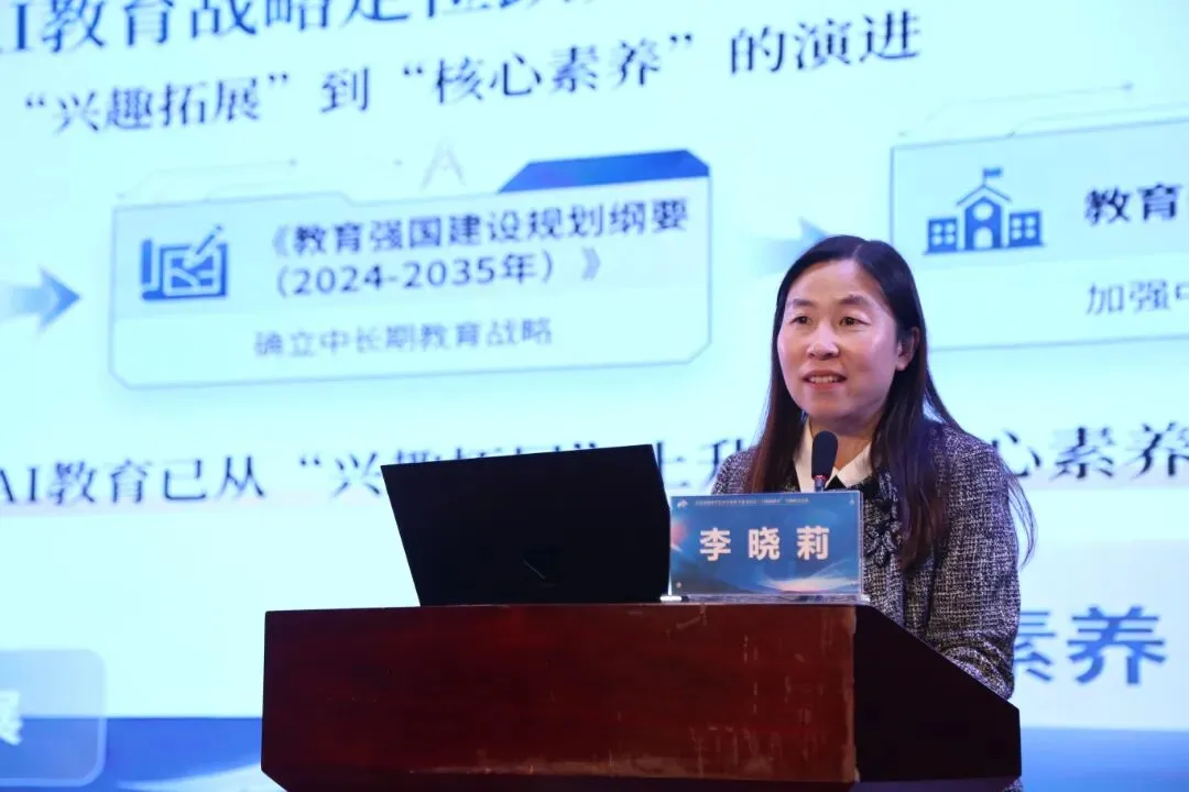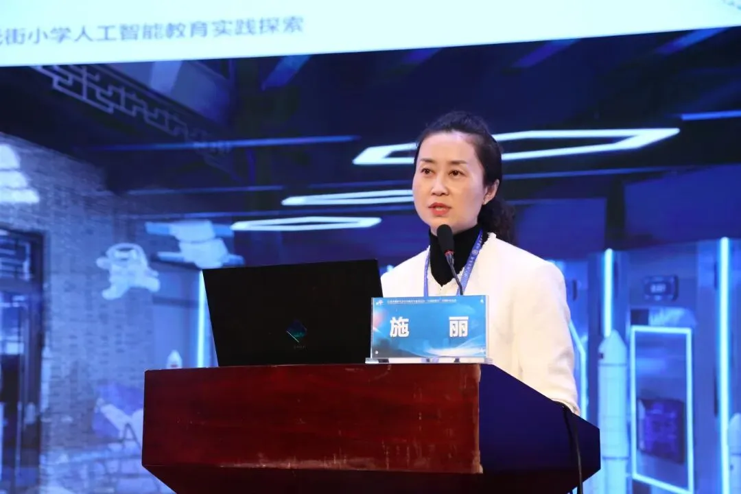 连元教育集团总校长、连元街小学党总支书记施丽作了题为《百年底蕴筑根基,智慧赋能启新程》的经验分享,生动展示了学校在人工智能教育领域的探索与实践。作为一所拥有128年历史的百年老校,连元街小学将“养根竢实”的办学理念与前沿科技深度融合,构建了独具特色的“AI+教育”新样态。学校依托连元AI“数字学伴”及AI学习、体验、创意“三大中心”,实现了从传统教学向个性化、精准化教学的跨越。