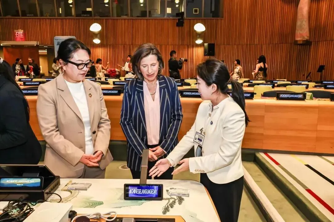联合国副秘书长弗莱明体验讯飞同传麦克风