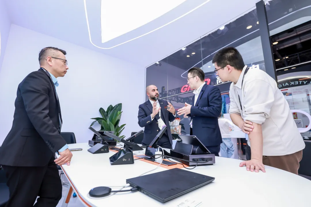 本次展会上,讯飞会议一体机成为焦点。作为首款搭载端侧大模型的跨语言会议主机,这款设备面向政企、高校、商务等高端会议场景,具有两大核心经济价值: