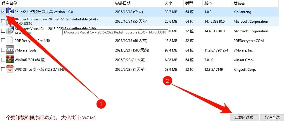 卸载就非常简单了,勾选需要卸载的软件,这里就可以勾选多个软件了,勾选完成后,点击卸载所选项就可以了。