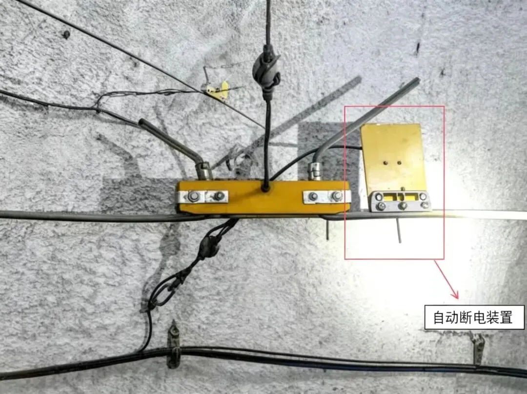 在3#、4#卸载桥下桥端无电区与有电区交界位置安装自动断电装置,车辆有冲出趋势时自动断电;同时,在接车区域配套完善人工紧急断电装置,实现双重断电防护。