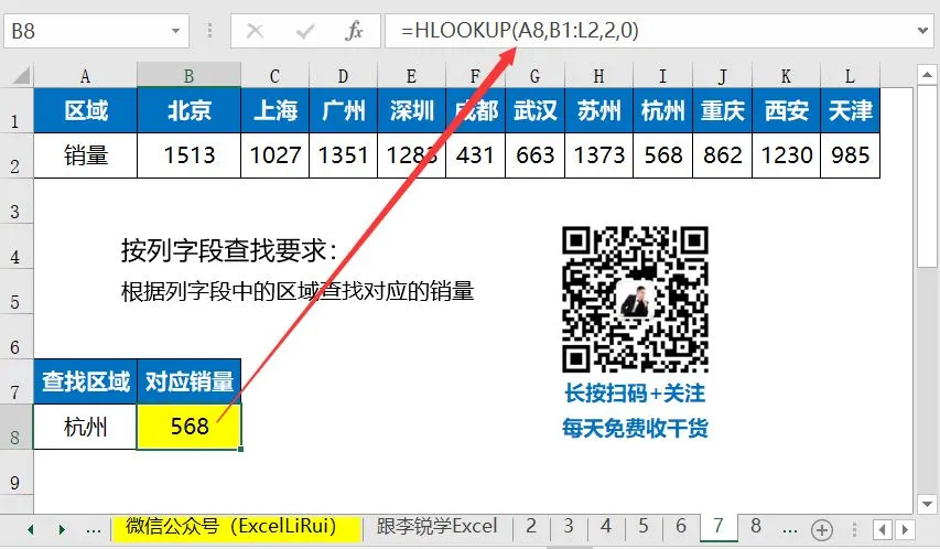 HLOOKUP函数与VLOOKUP函数用法相似,区别在于查找方向不同,这两个函数结合在一起学习,效果会更好。