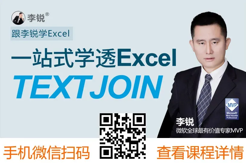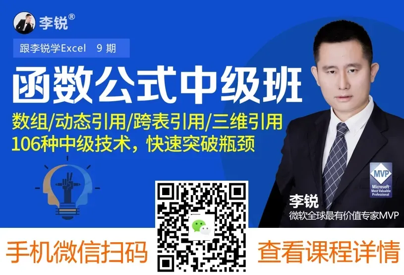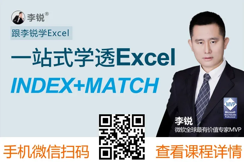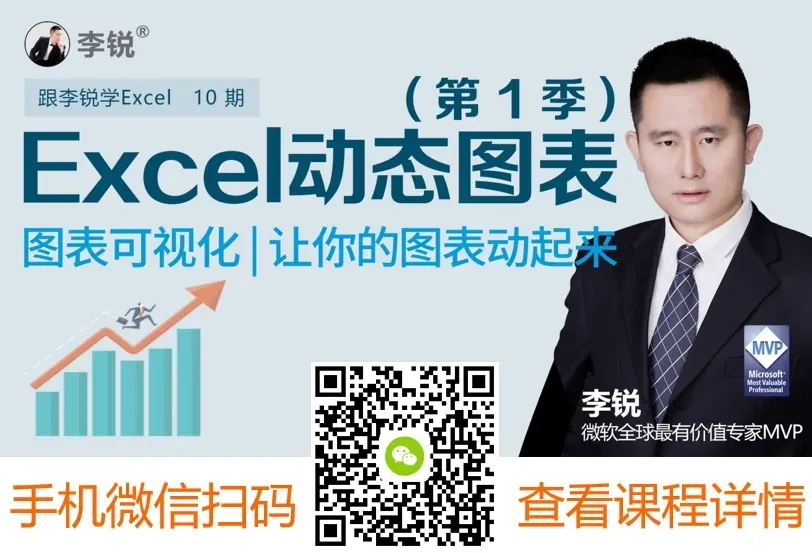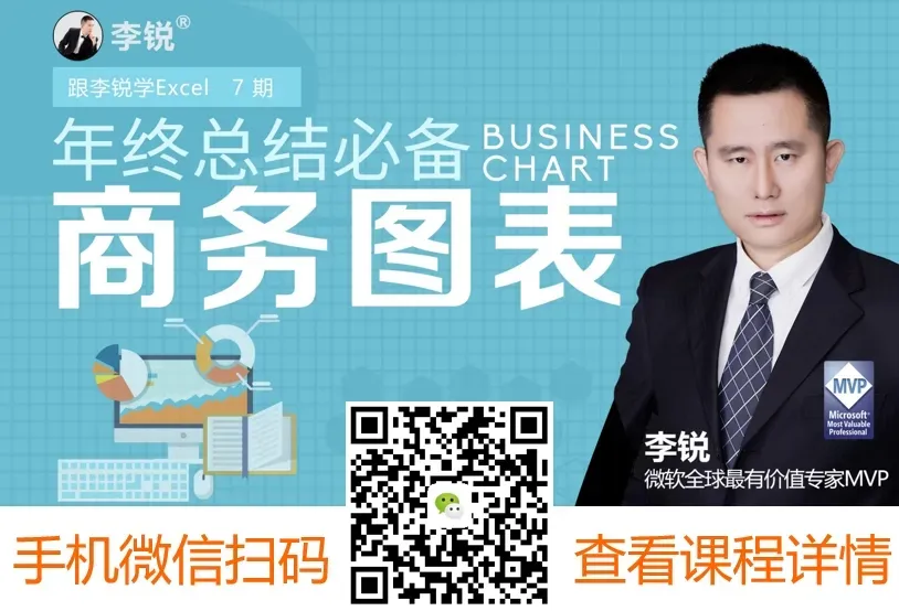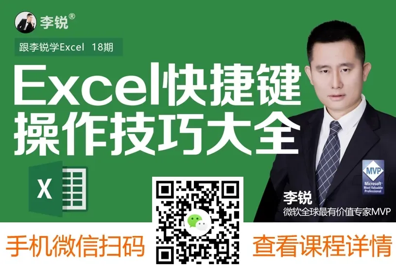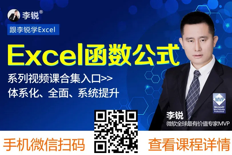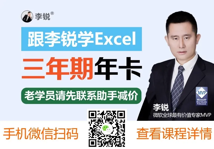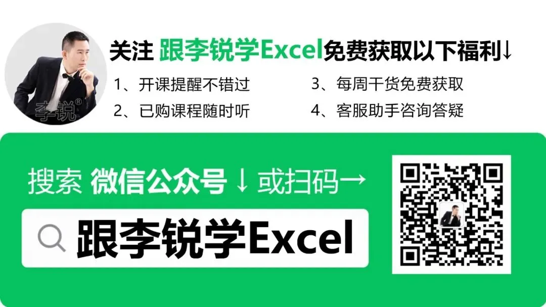 除了本文内容,还想全面、系统、快速提升Excel技能,少走弯路的同学,请搜索微信公众号“跟李锐学Excel”点击底部菜单的“知识店铺”或下方扫码进入。