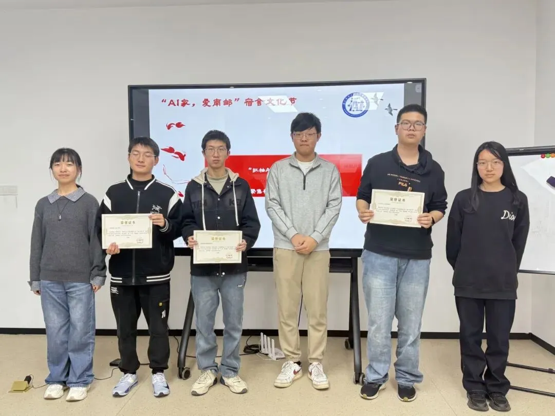 最后,“红柚AI家,文明有约”宿舍文明公约评比获奖宿舍代表依次上台,从学院优秀学生党员代表手中接过荣誉证书。这一环节不仅是对同学们积极参与宿舍文化建设、用心制定文明公约的肯定与鼓励,更体现了“党员带头、全员参与”的理念——由党员为获奖同学颁奖,象征着红色基因的传承与宿舍自我管理责任的接力。获奖同学们纷纷表示,将以此次荣誉为新起点,继续在宿舍中发挥带头作用,用实际行动守护“小家”的文明与温暖。