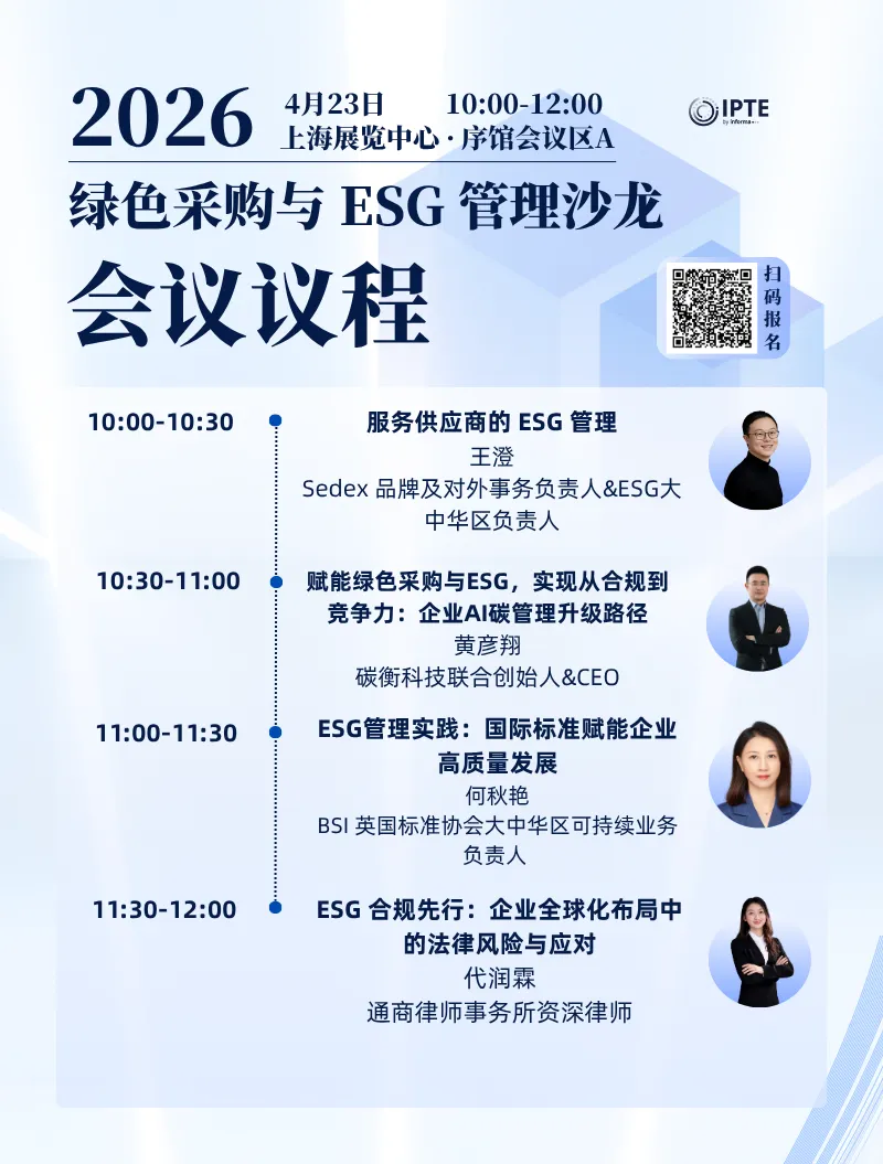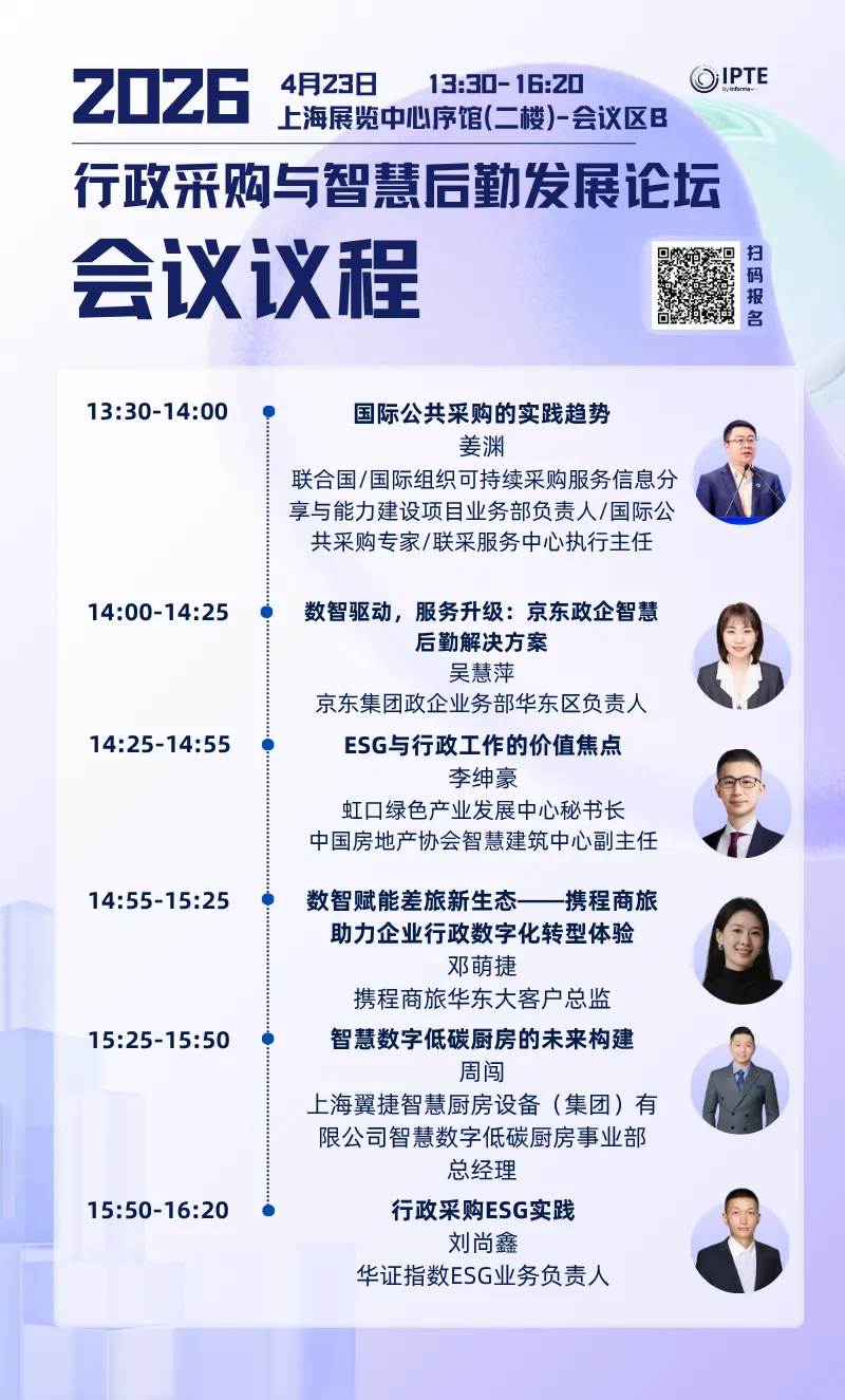 除AI 数智化展区,IPTE上海国际后勤资源采购贸易展览会同期还为您打造多场高质量论坛,覆盖 AI 数智化、ESG、行政采购、商旅管理等行业关键议题。