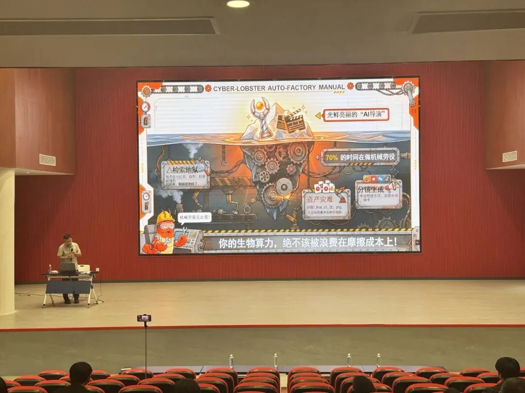 原中国航空工业集团高级工程师张彪则围绕“openclaw(龙虾)应用赋能行业应用”展开讲解,结合生产自动化展示了AI工具在漫剧方向生产方向中的理论基础,帮助基层干部和爱好者理解如何“用得起、用得好”人工智能。