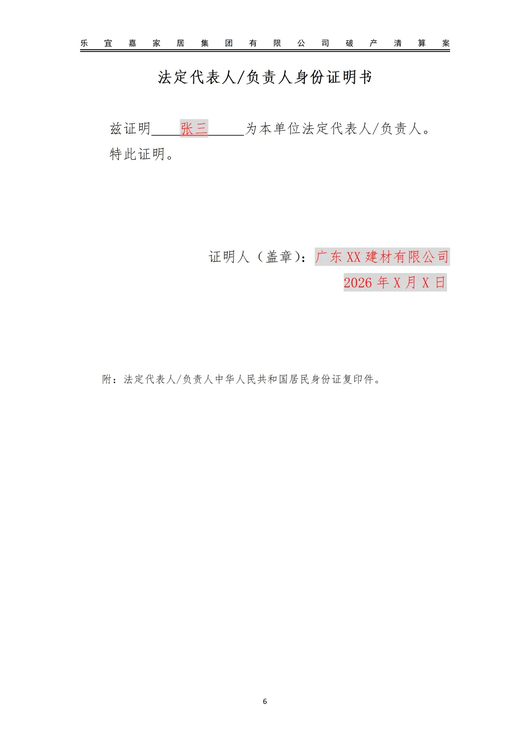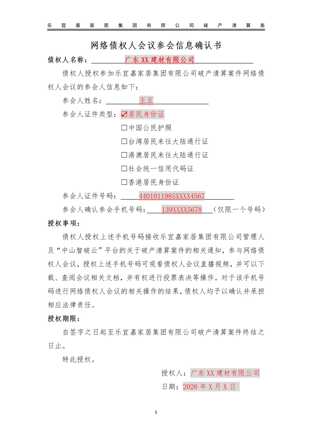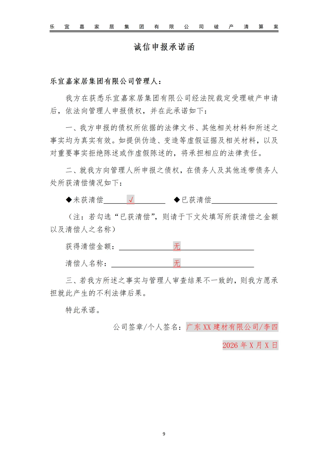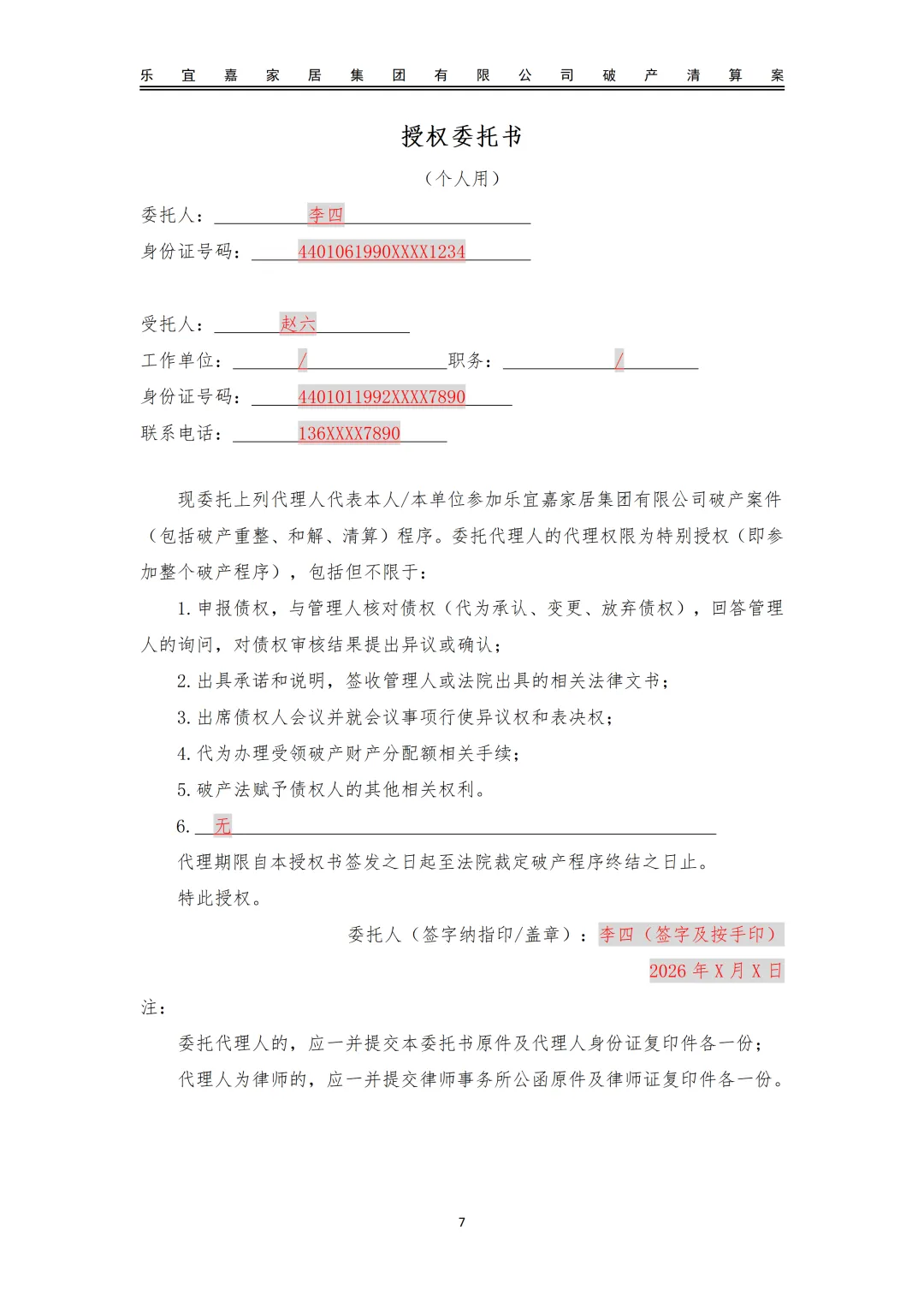 乐宜嘉家居集团有限公司 | (模板参考)债权申报表格
