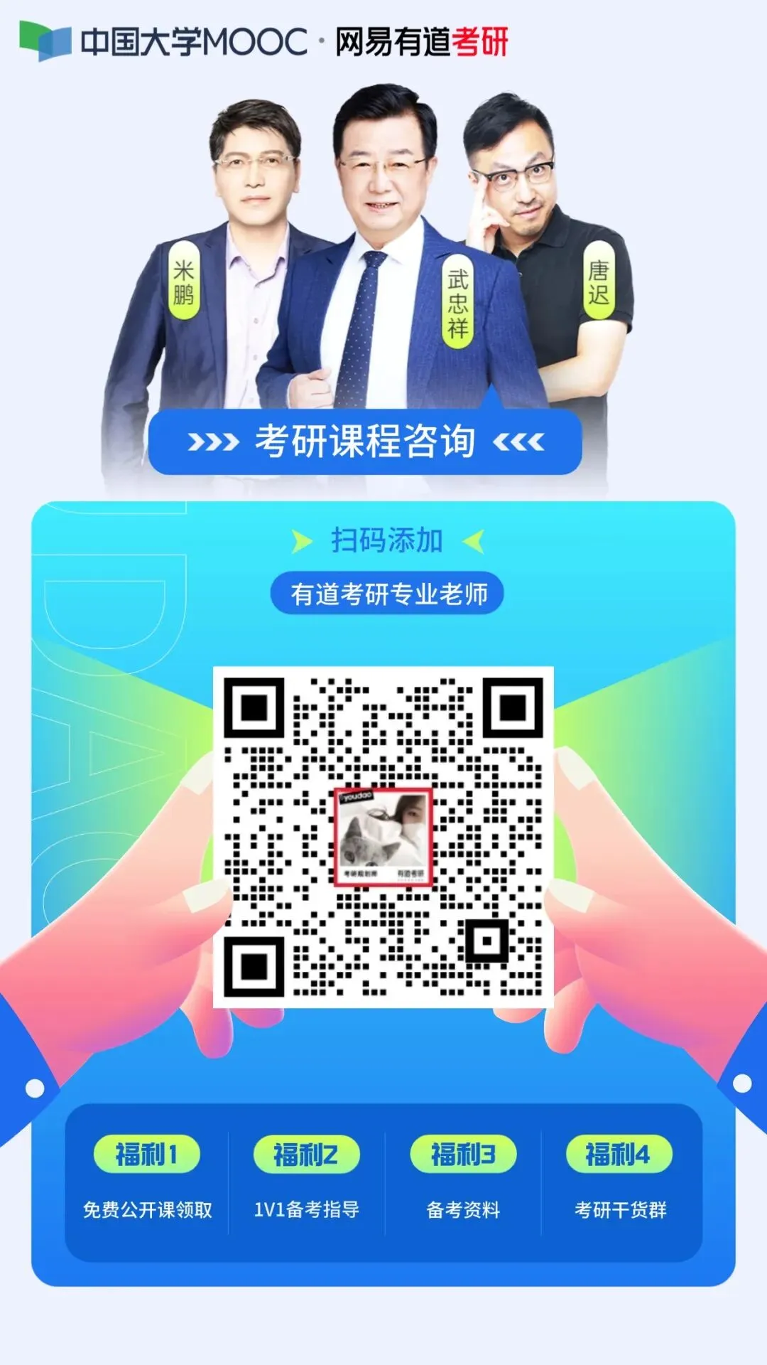 想要了解考研课程的同学,欢迎扫码添加有道考研老师:
