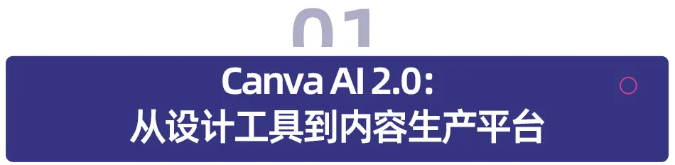 在介绍 Learn Grid 之前,需要先理解 Canva AI 2.0 带来的整体变化。本次更新使 Canva 从传统设计软件转型为 AI 驱动的内容生产平台。用户可以从一个提示出发,生成、管理并持续优化完整内容,不再依赖模板或静态工具,而是以目标、创意或概要为起点,通过对话直接生成最终成果。