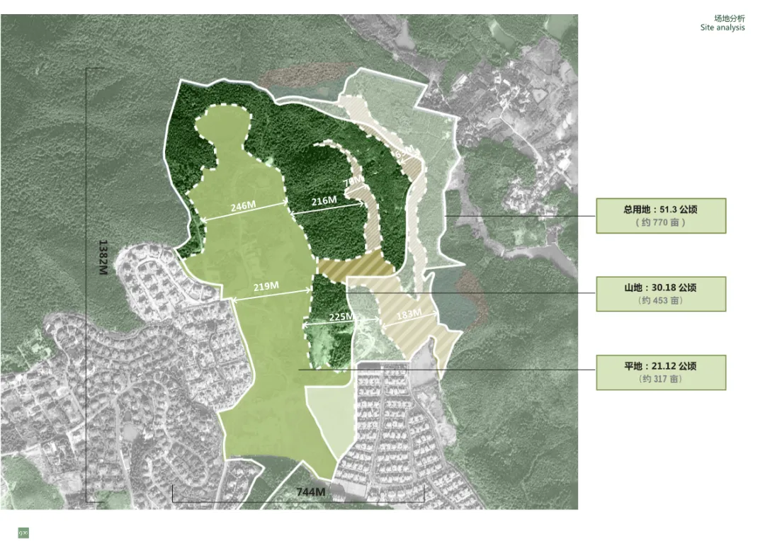 本方案为绿城金基桃李春风项目一期的详细规划设计方案。项目位于杭州临安,总用地面积约51.3公顷,定位为融合养老、度假与居住功能的低密度高端社区。规划核心在于尊重并利用原有山地、水系等自然地貌,将社区划分为小镇中心、平地村落、台地村落、坡地村落等不同片区,并配备了完善的颐乐学院、卫生护理院、商业街及各类公共服务设施。设计充分考虑了老年人的生活需求,构建了便捷安全的车行、步行及消防系统,旨在打造一个景观优美、配套齐全、生活便利的理想栖居地。