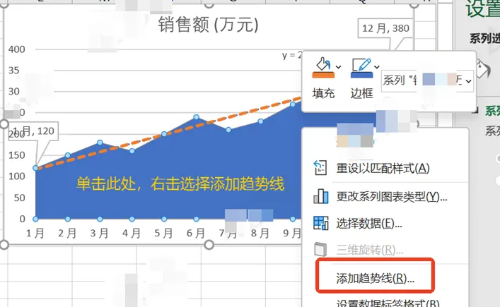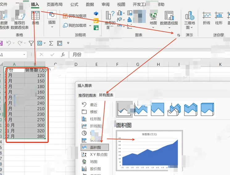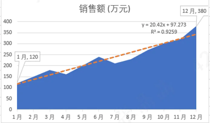 面积图是折线图的衍生图表,核心是「折线 + 填充」:用折线展示数据的变化趋势,用填充区域直观呈现数据的规模 / 总量,是时间序列数据的经典可视化工具。添加线性趋势线:抹平短期波动,提炼长期增长趋势。记得关注我:表格一分钟;明天我们学习雷达图!明天我们一分钟见~