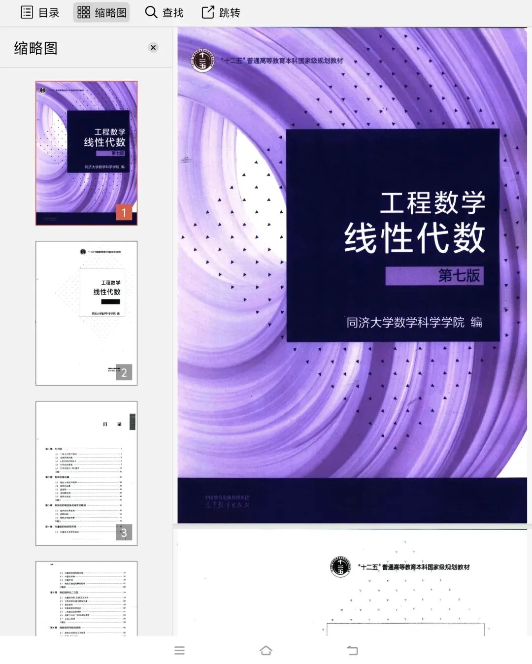 《工程数学线性代数》第七版由同济大学数学科学学院线性代数教研室修订,2023年3月出版。本书依据“工科类本科线性代数课程教学基本要求”修订,调整内容编排与概念叙述,新增二维码链接抽象内容的几何意义解说、课件及自测题资源,适用于工程类及人工智能、数据科学等新兴专业。全书共六章,包含行列式、矩阵运算、线性方程组等核心内容,每章配有习题及参考答案。教学主线覆盖前五章基础内容(约34学时),第六章侧重线性空间理论供高要求专业选学。该书通过章节结构优化与数字资源融合,兼顾理论完整性与教学适应性。