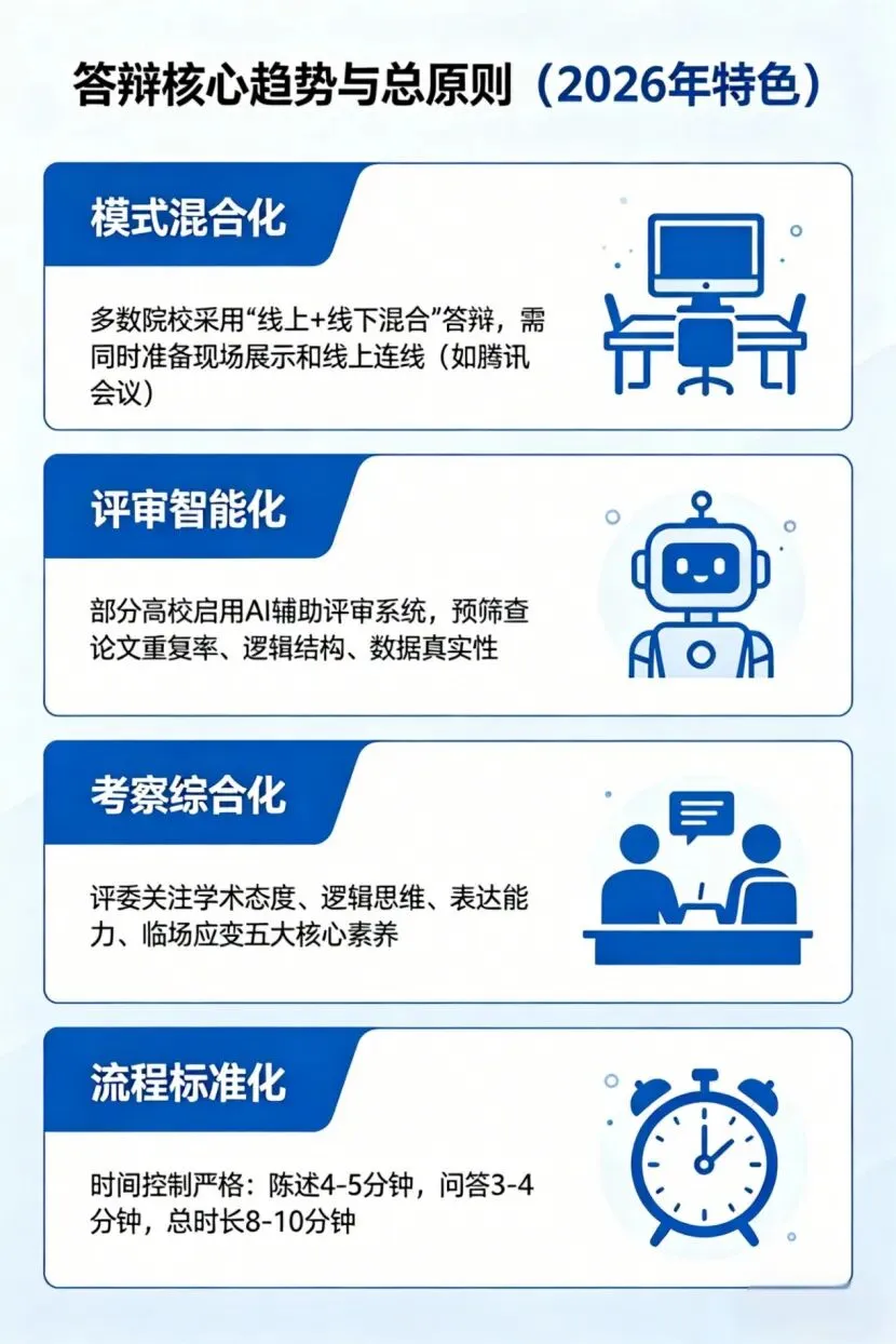 (1)模式混合化 :多数院校采用 “线上+线下混合” 答辩,您需要同时做好现场展示和线上连线(如腾讯会议)的双重准备。
