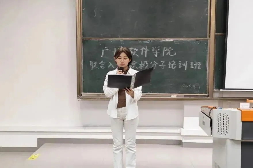 本网讯 为加强入党积极分子的培养教育,引导广大青年坚定理想信念、端正入党动机、践行初心使命,数字经济与管理学院党委、数字传媒学院学生党委、外国语学院党委与广州软件学院青年马克思主义党支部(以下简称“学校青马党支部”)携手举办广州软件学院四支部联合入党积极分子培训班。开班仪式于2026年4月7日下午在D102举行,共同开启本次党性锤炼与思想提升的学习征程。数字经济与管理学院党委李文娟书记、数字传媒学院党委许恒梅书记、外国语学院党委张洪华书记、学校青马党支部余润珠书记及7位二级学院学生党支部书记出席开班仪式。