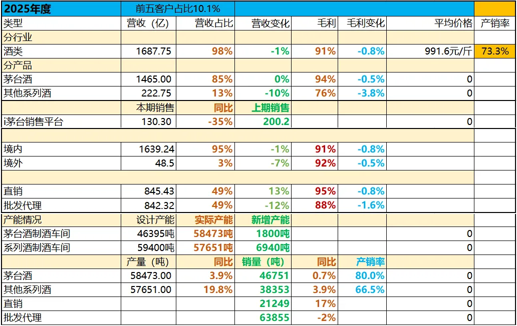 2025年年报中茅台酒营收占比85%,根据行业推断、券商分析师这么多年的推论,飞天茅台占比茅台酒85%-90%,飞天茅台自营渠道占比30%、经销渠道占比70%,如果这么来看的话,2026年这一系列的改革,足够覆盖非标茅台、系列酒在2026年预期中的下滑态势;