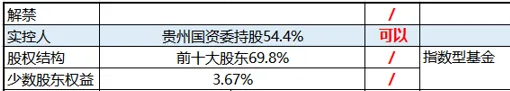 贵州地方国资委+茅台集团,合计持股61%,这部分基本上是不过减持的,前十大股东持股69.8%;
