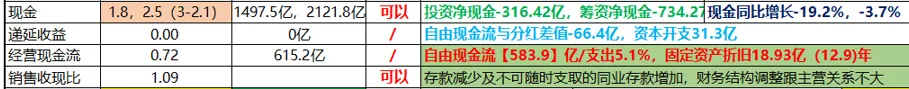 资本开支不大的,每年几十个亿很少,经营现金流一直还可以,2025年经营现金流比利润要少不少,公司也给予了说明,存款减少及不可随时支取的同业存款增加,财务结构调整跟主营关系不大,没什么问题,这么多年公司手上拿了大笔的现金,2025年差不多是有2000多亿的钱,产生的利息费是32亿左右,年化1.6%,很稳健的利息;