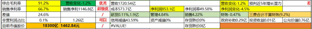 下面开始看看茅台的各项数据;