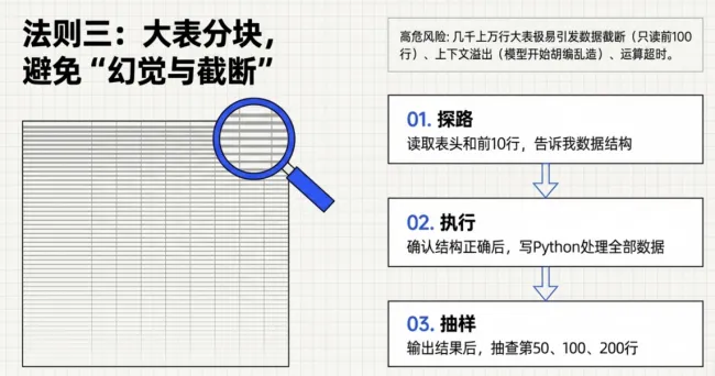 - 数据截断:AI只读了前100行,后面的全丢了,但它不会告诉你