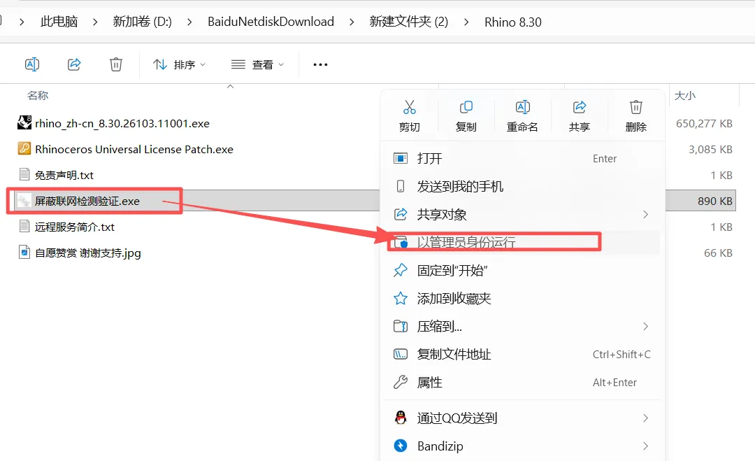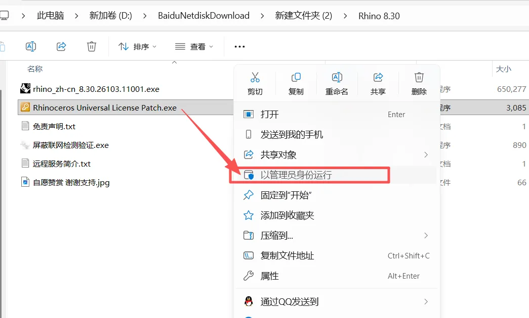 2、进入【Rhino 8.30】文件夹,以管理员身份运行【rhino_zh-cn_8.30.26103.11001】。