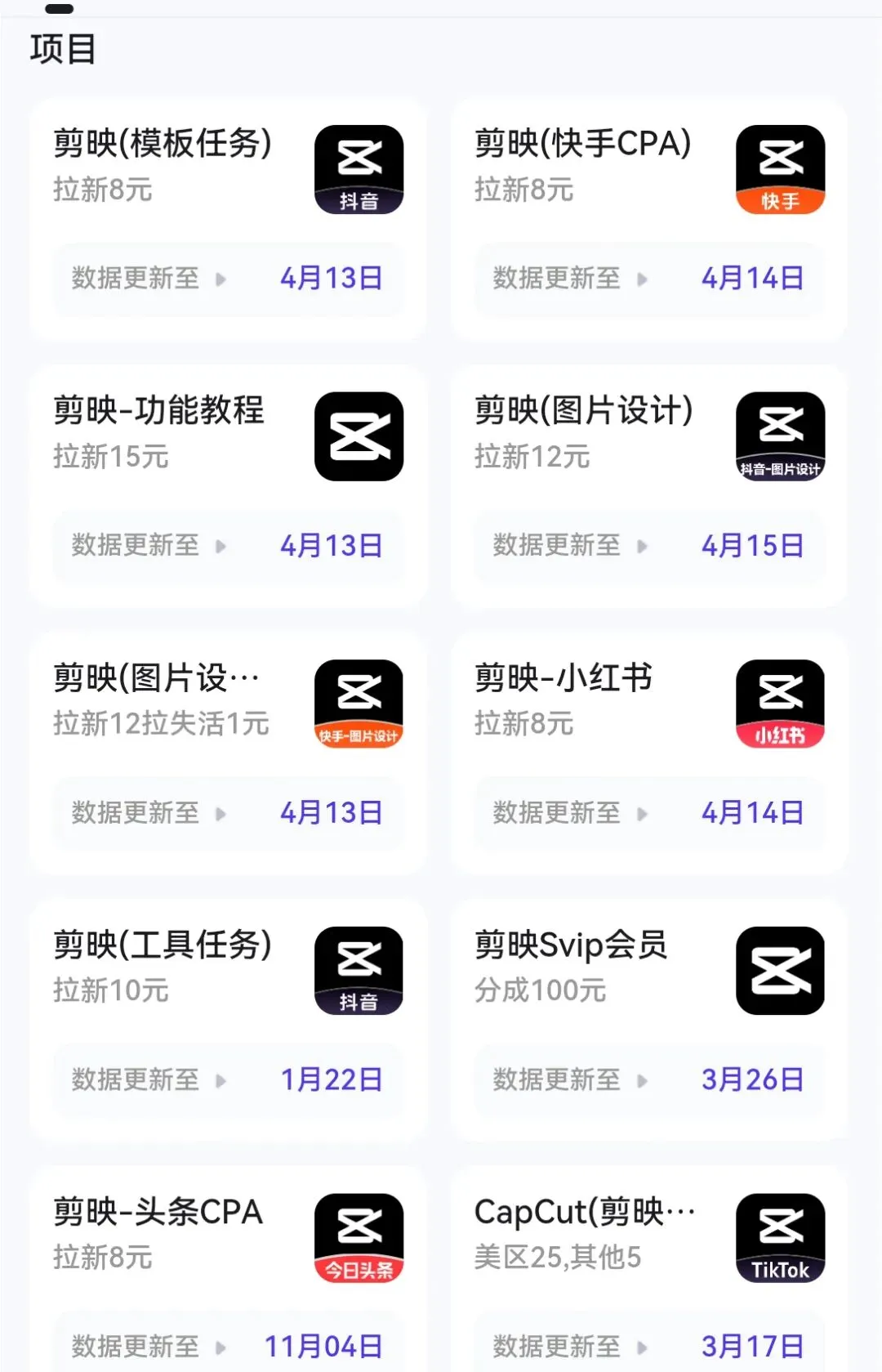 项目涵盖超多APP拉新板块,精选三大热门板块,收益清晰可见,操作简单易出单: