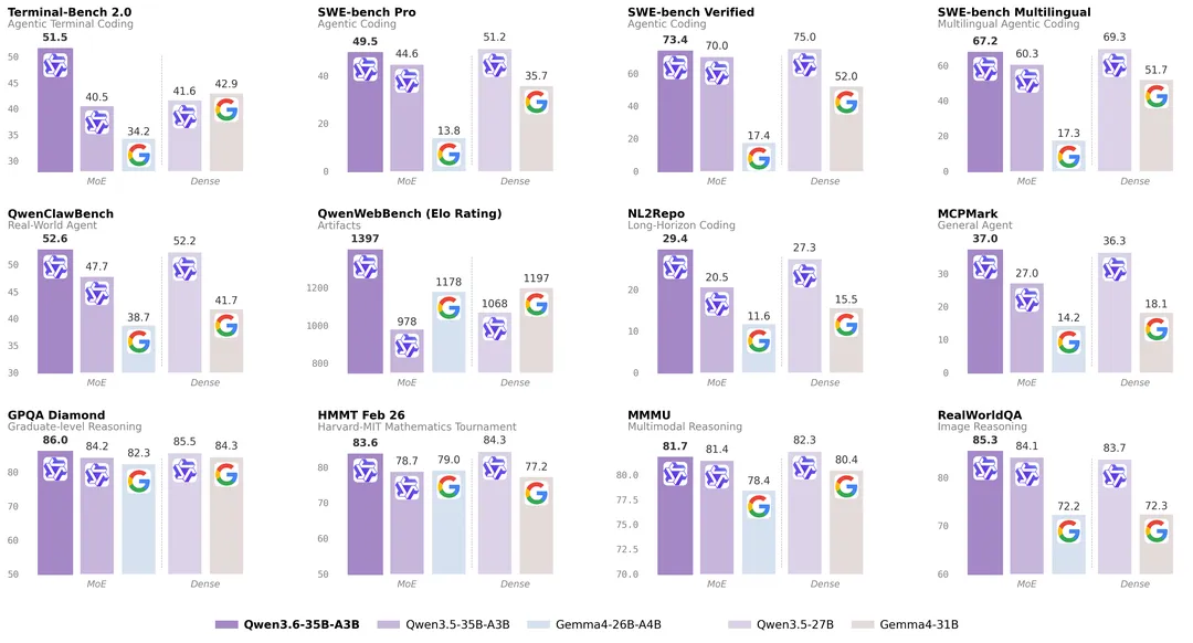 Qwen3.6-35B-A3B模型。该模型主打稳定性和真实场景实用性,重点强化了智能体编程、前端工作流及多模态感知能力。官方评测显示,它在多项编程、视觉语言及空间智能基准测试中表现出色。