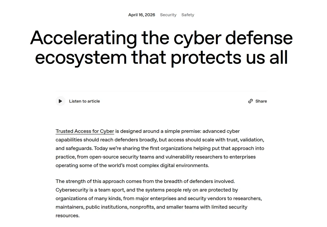 OpenAI宣布加速构建全球网络防御生态,向美英两国相关机构提供