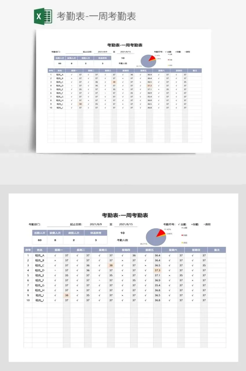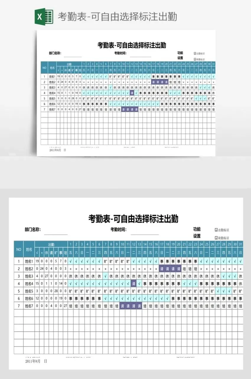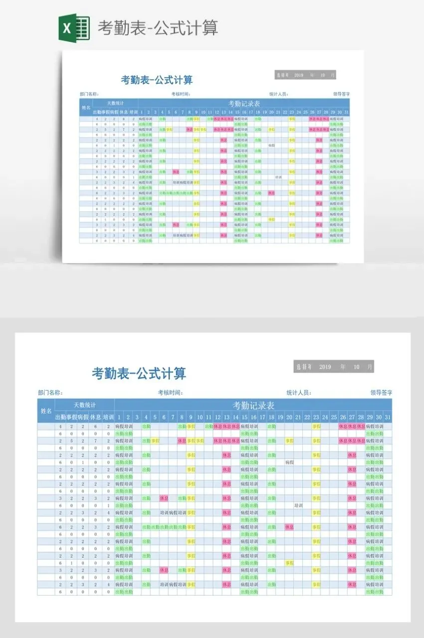 本文内容分享:【142款】员工考勤表电子模板(可编辑)